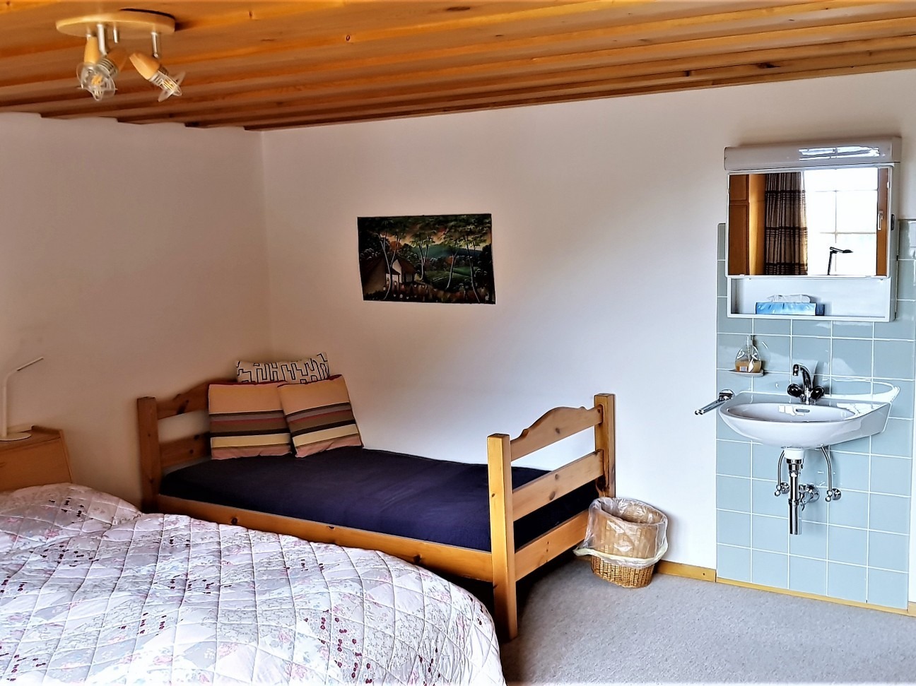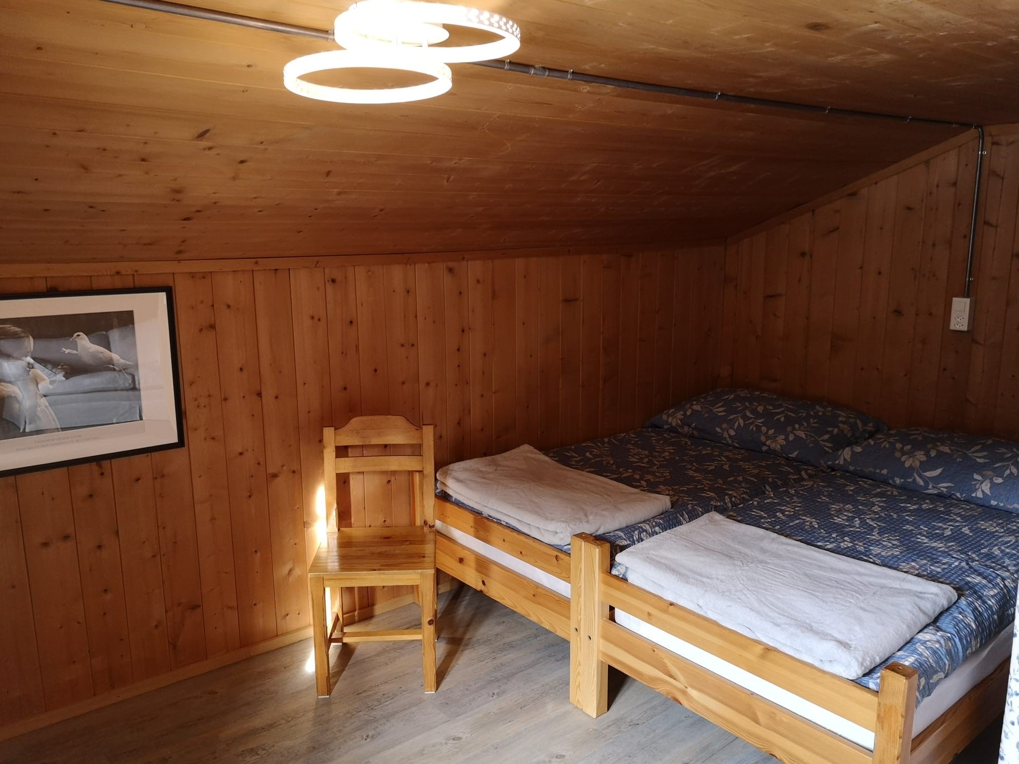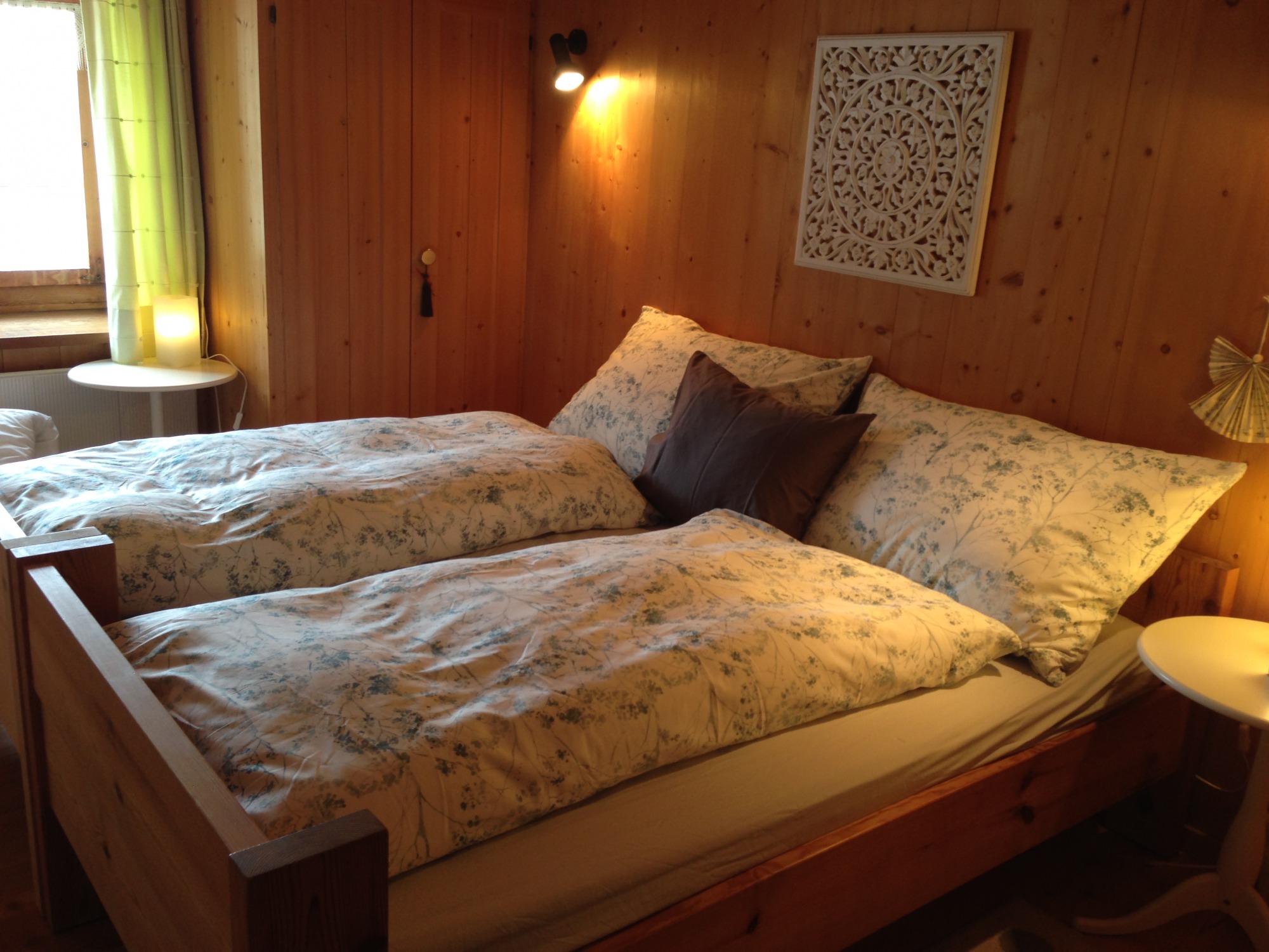 Die geräumige und helle 2 1/2 Zimmer Wohnung im 2. Stock verfügt über 5 Betten, eine zeitgemässe Küche mit Essecke, getrenntes Bad/WC und einen Balkon. Auf Wunsch können noch 2 Betten im Estrichzimmer dazu gemietet werden.